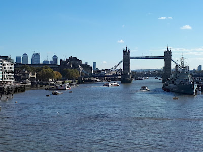 We cross the River Thames and walk along the boardwalk towards the Tower of London. We then cross the Tower Bridge, but there are a lot of people, and it is hard to walk. Again, I like the tourist site and it is good to visit them but I really hate all the crowds.